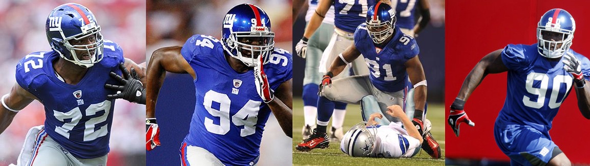 Osi, Kiwi, Tuck et JPP, tel est le surnom qui a été donné à cette ligne défensive spécialement constituée pour les passings plays avec les DL les plus rapide de Big Blue. Aaron Ross s’amusait à faire « Vroom vroom! » lorsque ces 4 là étaient sur le terrain et Perry Fewell n’a pas fini de tester différentes combinaison pour la défense. Pour ceux qui ne connaissent pas le NASCAR, c’est un tournoi automobile américain dans lequel des voitures tournent en rond (ou presque) à fond les ballons et fond valdinguer les adversaires. Alors il ne faut pas s’emporter. Même si sur le papier une telle ligne fait rêver (2 pro bowlers et 2 autres 1st rounders), il faut se rappeler que l’année dernière on disait que les Giants avaient tellement de starters pour leur DL qu’ils allaient pouvoir les faire tourner de sorte qu’ils auraient tout le temps des joueurs frais. Au final, les Giants ont passé la saison avec une ligne minable pour laquelle on se demandait qui était pas trop cassé pour jouer. Donc wait & see guys.
