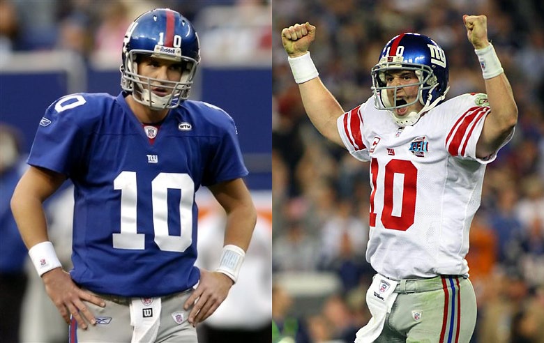 Alors il ne faut pas croire que je critique Eli pour cela, bien au contraire. Vous savez déjà que j’ai beaucoup apprécié le fait qu’Eli montre qu’il avait confiance en lui en n’hésitant pas (ou presque) à dire qu’il était dans la classe de Tom Brady. Mais maintenant on a besoin qu’il nous le prouve. Qu’il fasse mentir ses détracteurs comme il a fait mentir ceux qui disaient qu’Eli ne gagnerait jamais un Super Bowl et qu’il ne serait rien sans Burress & cie.