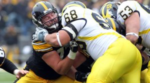 Aujourd’hui encore nous allons nous intéresser à un OL mais étant donné le besoin d’amélioration à ce poste pour les Giants, ça ne fait pas de mal. Il s’agit de Riley Reiff (6 ft 5 et 313 lbs) qui en plus d’être de 11 jours mon aîné (oui, rappelez vous que je suis du 12 décembre 88) a joué toute la saison dernière en tant que Left Tackle pour Iowa. Il est aujourd’hui considéré par beaucoup comme le 2e meilleur OT se présentant à la draft derrière Matt Kalil d’USC.