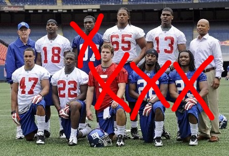 - RB Andre Brown: Il devait être le nouveau Derrick Ward puis il s’est blessé. A partir de là, les Giants n’ont jamais montré un réel attachement pour le jeune back allant jusqu’à le libérer de son contrat une première fois. Brown est finalement revenu mais pour rester dans le practice squad. Rien ne permet de penser que Brown trouvera sa place dans cette équipe vu que l’équipe a drafté 2 RB ces 2 dernières saisons dont un au premier tour.
