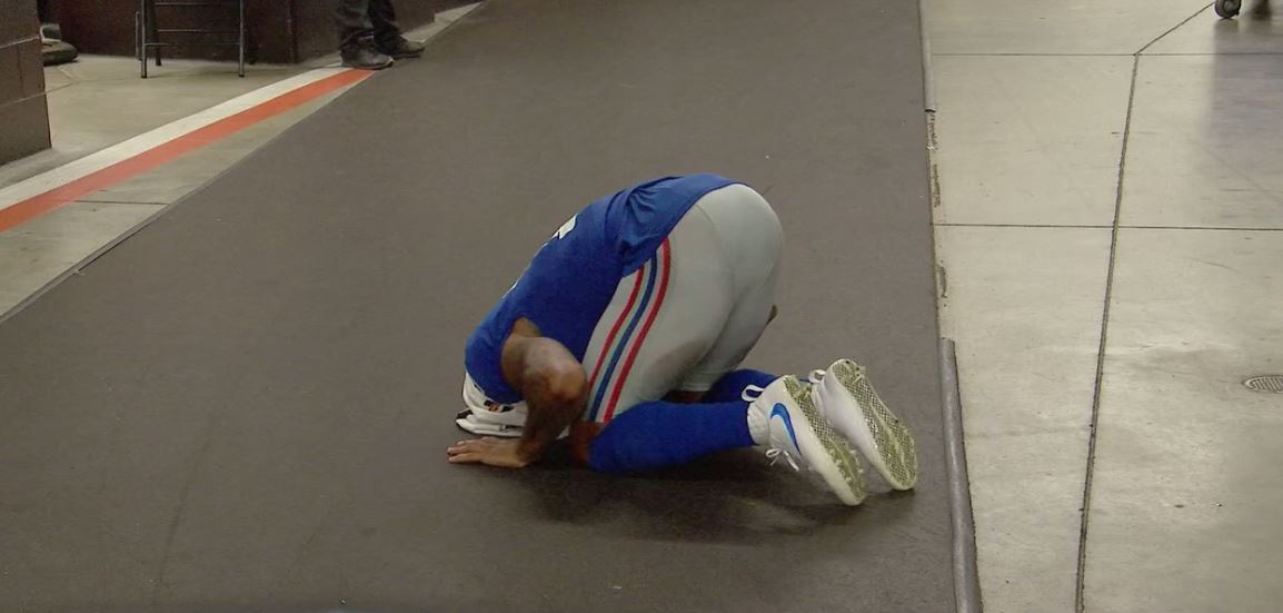 C’est l’image de la soirée, malheureusement. Et actuellement, on espère que ce ne sera pas l’image de l’année. Sur une catch anodin, Odell Beckham recevait un coup très sale au niveau du genou et a tout de suite réagit comme si le problème était grave, jetant son casque sur le terrain et sortant du terrain pour rentrer directement aux vestiaires. A la vue des images, tous les fans se mirent à paniquer. On voit le genou prendre un gros coup et on repense à la blessure subie il y a quelques années sur ce même terrain par Rob Gronkowski, une déchirure des ligaments croisés.