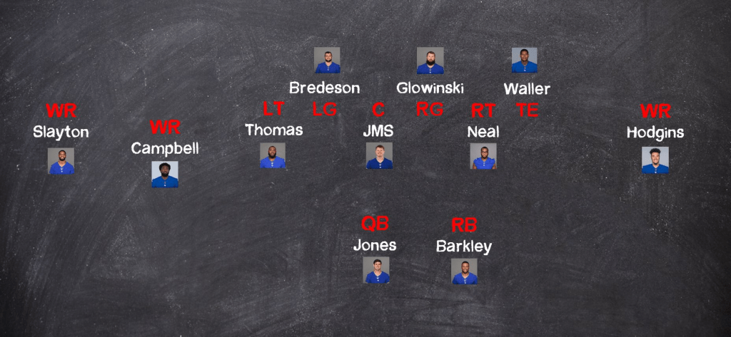 Nous allons évidemment considérer qu’aucun joueur ne sera blessé durant le training camp…ce qui est fort peu probable compte tenu de notre historique de blessures, soyons honnêtes. Commençons donc par l’attaque et la ligne offensive. A gauche, aucun doute, Andrew Thomas sort d’une saison exceptionnelle et sera titulaire. La plus grande énigme sur cette Oline vient du post de guard gauche qui a beaucoup tourné l’an passé. Shane Lemieux a déçu et a de nouveau été blessé. Il reste Joshua Ezeudu et Ben Bredeson. Ce dernier sort d’une saison correcte et on va lui donner l’avantage pour le moment, même si l’on aimerait voir Ezeudu avoir plus de temps de jeu. Au centre, on va miser sur notre rookie John Michael Schmitz, qui est de toutes façons le seul vrai centre de métier dans l’effectif. A droite, Glowinski a été correct l’an passé et devrait retrouver sa place. En tackle droit pas non plus de surprise, Evan Neal qui s’est beaucoup entrainé pendant l’intersaison aura à cœur de montrer son vrai niveau, après une campagne rookie assez catastrophique.