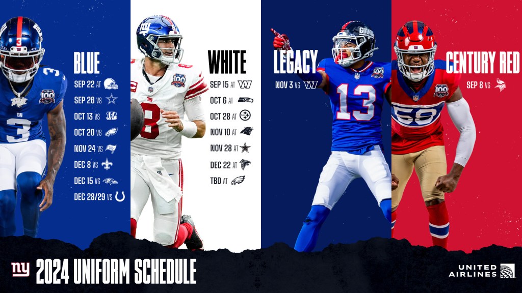Le planning des uniformes pour cette saison 2024-2025 a été dévoilé. Le nouvel équipement Century Red spécial pour les 100 ans de la franchise ne sera utilisé qu’une seule fois à l’occasion du match d’ouverture contre les Vikings. L’uniforme Legacy, qui avait énormément plu aux fans, sera quant à lui utilisé le 3 novembre pour le match contre les Commanders. Les autres équipements, le bleu à domicile et le blanc pour les matchs à l’extérieur, seront eux utilisés pour l’ensemble des autres rencontres.