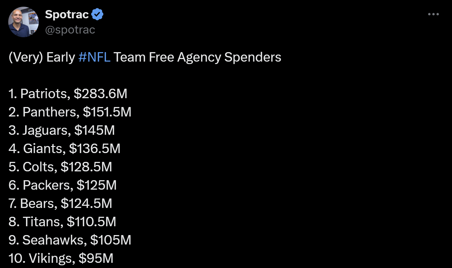 FIN DU PREMIER JOUR DE FREE AGENCY. Les Giants ont dépensé au total $136.5M, soit la 4ème plus grosse dépense derrière les Patriots, Panthers et Jaguars.